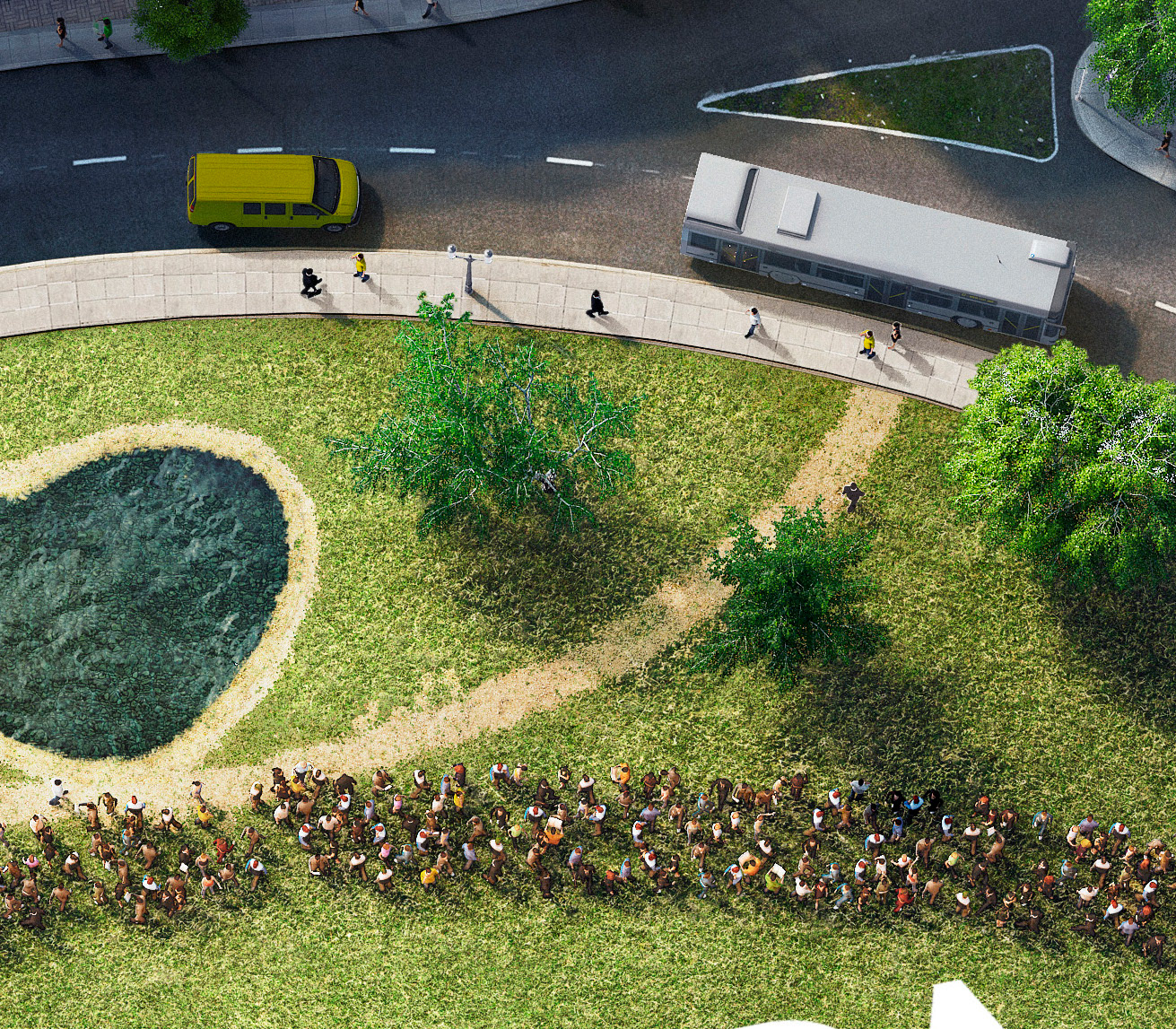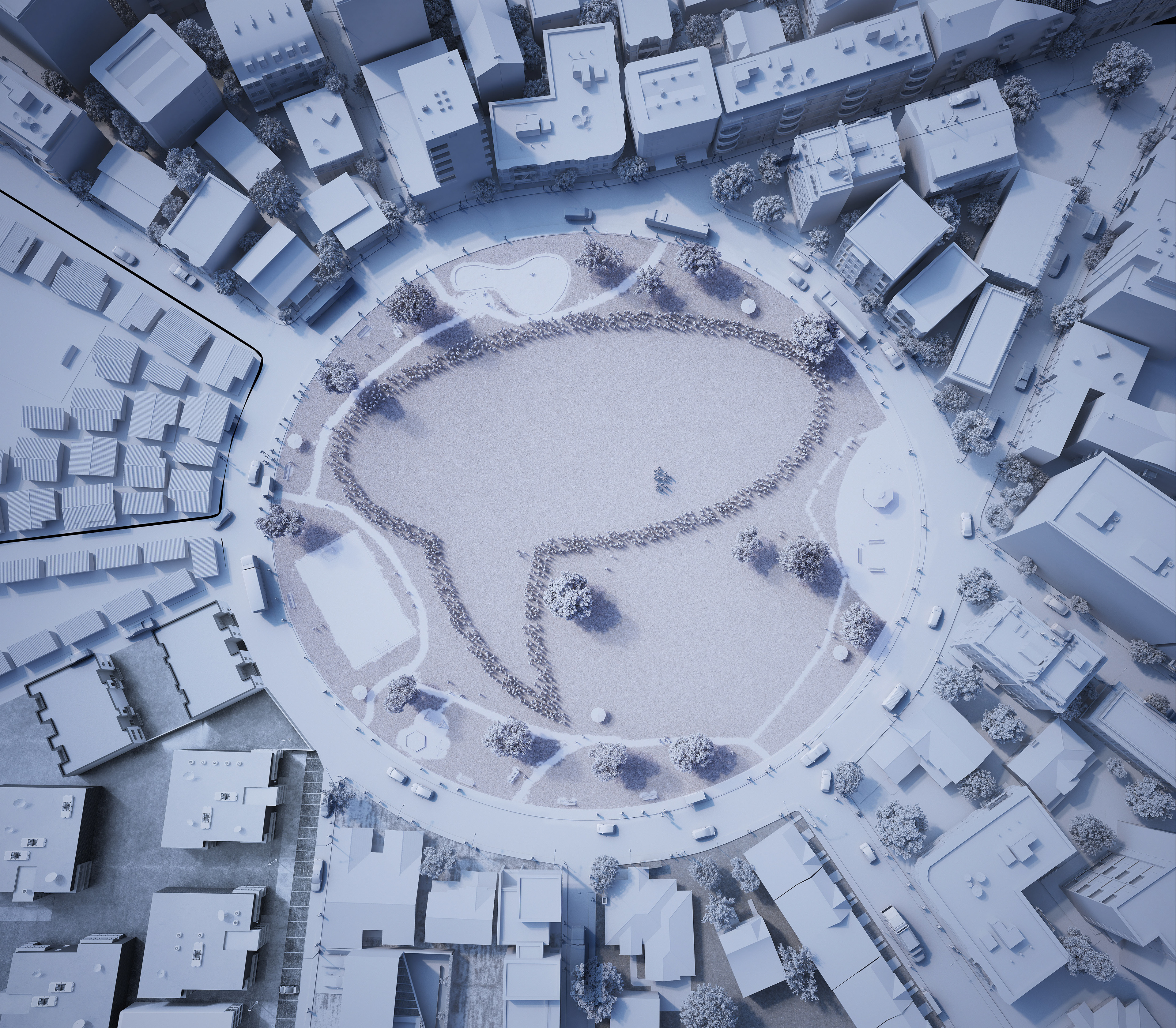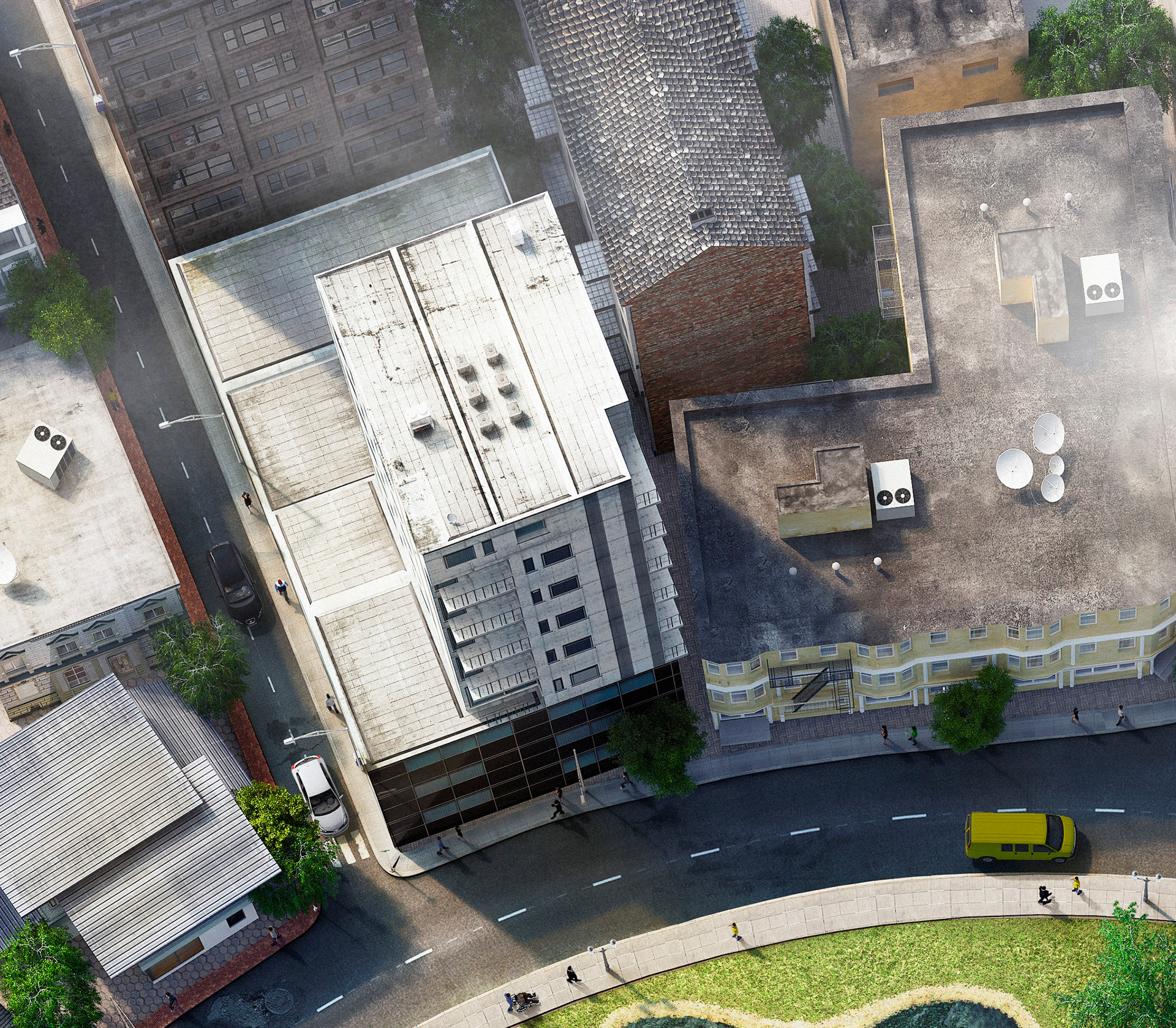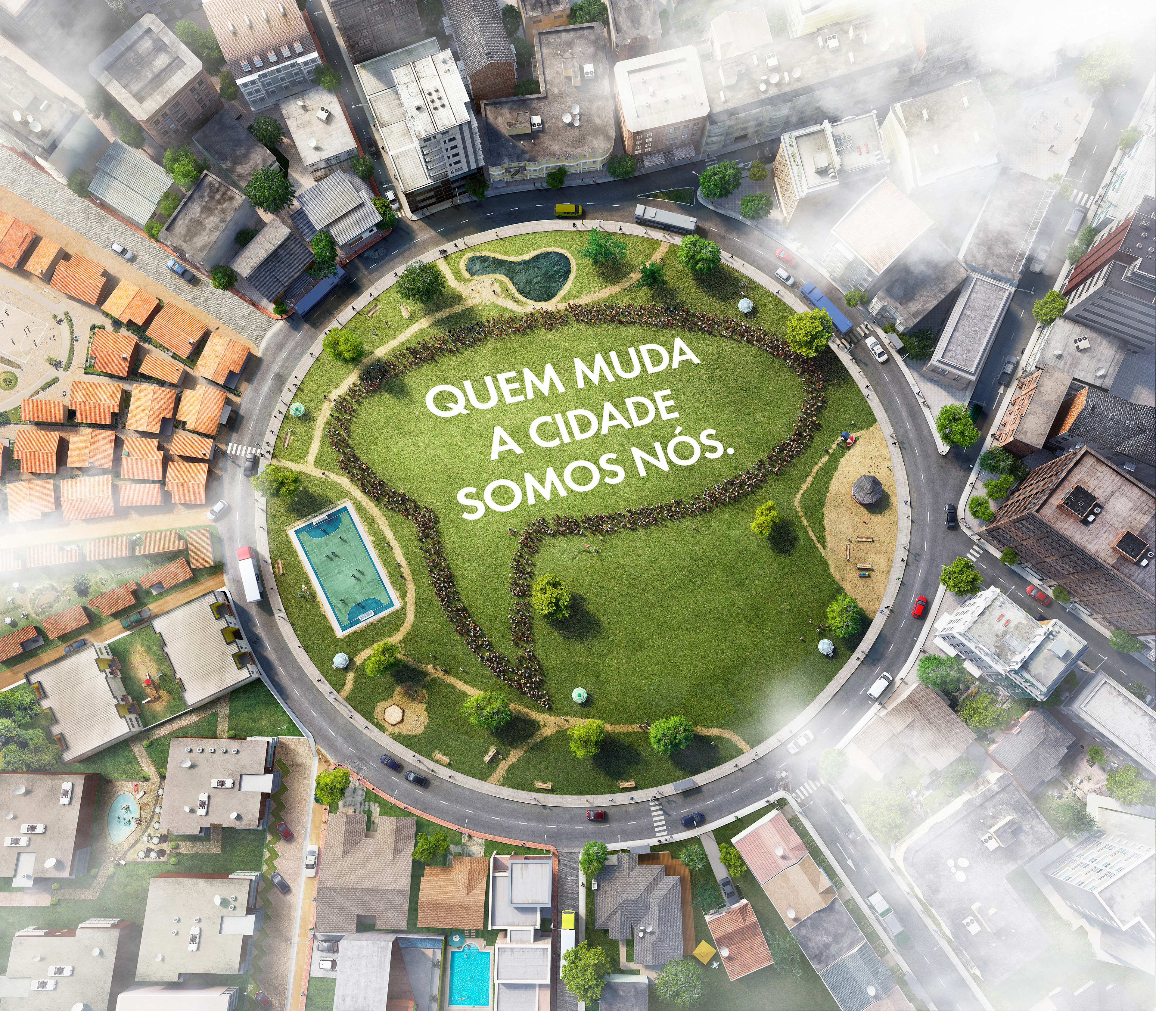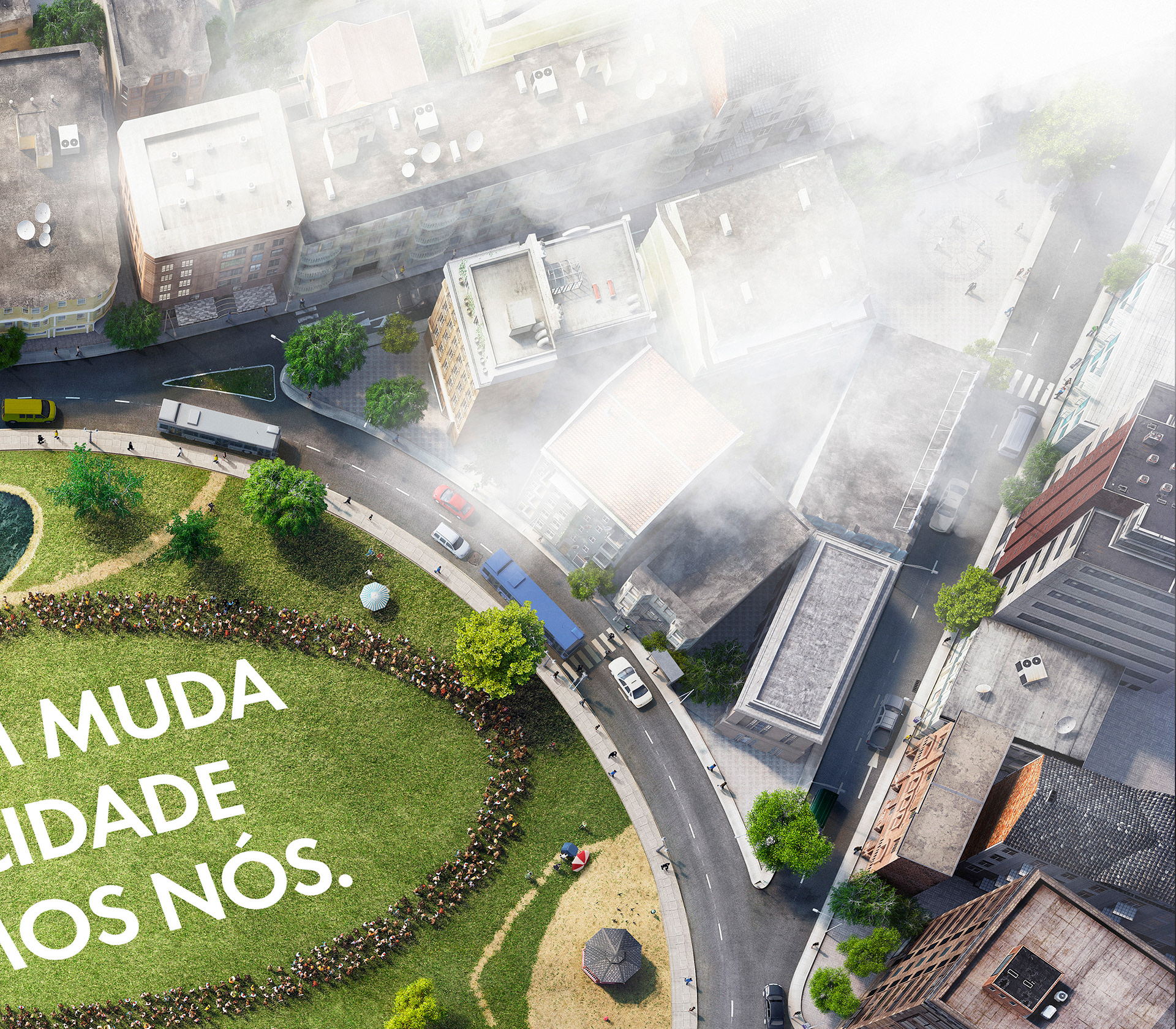 A top view of a cgi CITY. CGI - Felipe Eckhardt Retouch - Helena Lopes / Marc Recco